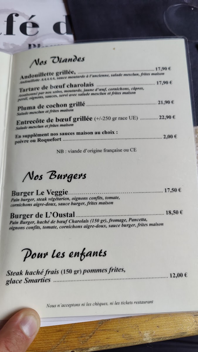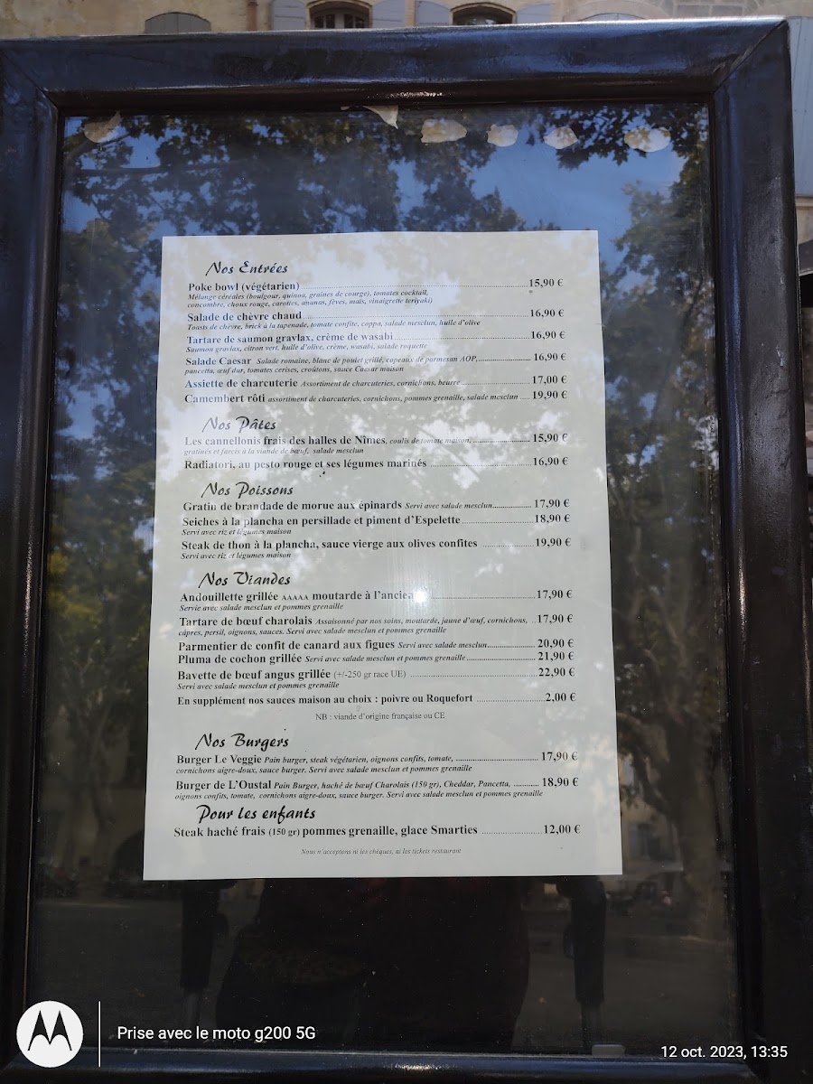 Welcome to Café L'Oustal, a delightful gem nestled in the heart of Uzès at 23 Pl. aux Herbes. This vibrant café offers a menu that caters to a variety of tastes, featuring standout dishes such as their juicy, well-seasoned burger with a crisp bun, deliciously accompanied by perfectly cooked fries. Patrons rave about the plats du jour, which keep diners coming back for more with their exceptional flavors night after night.